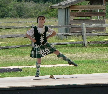 A young Highland dancer demonstrates her form in the sword dance at the 2005 Bellingham (Washington) Highland Games